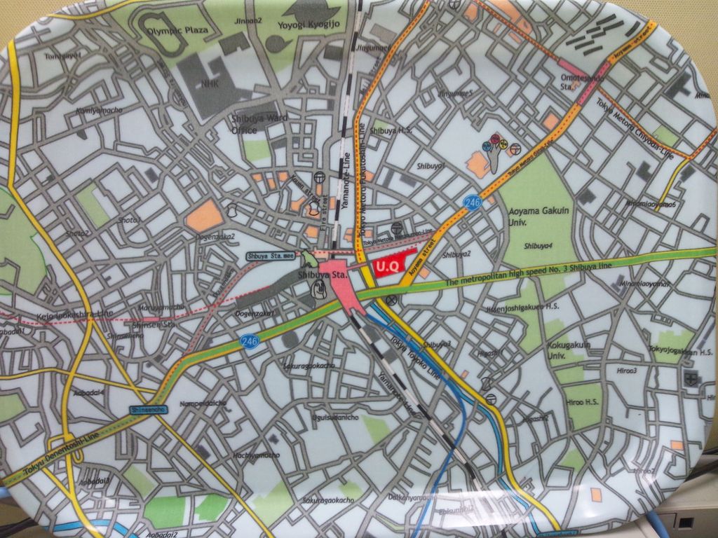 (ちなみに、お弁当用のトレイは、渋谷ヒカリエのオープン時にヒカリエ内の雑貨屋さんにて購入したもの。渋谷駅を中心とした地図の柄。)